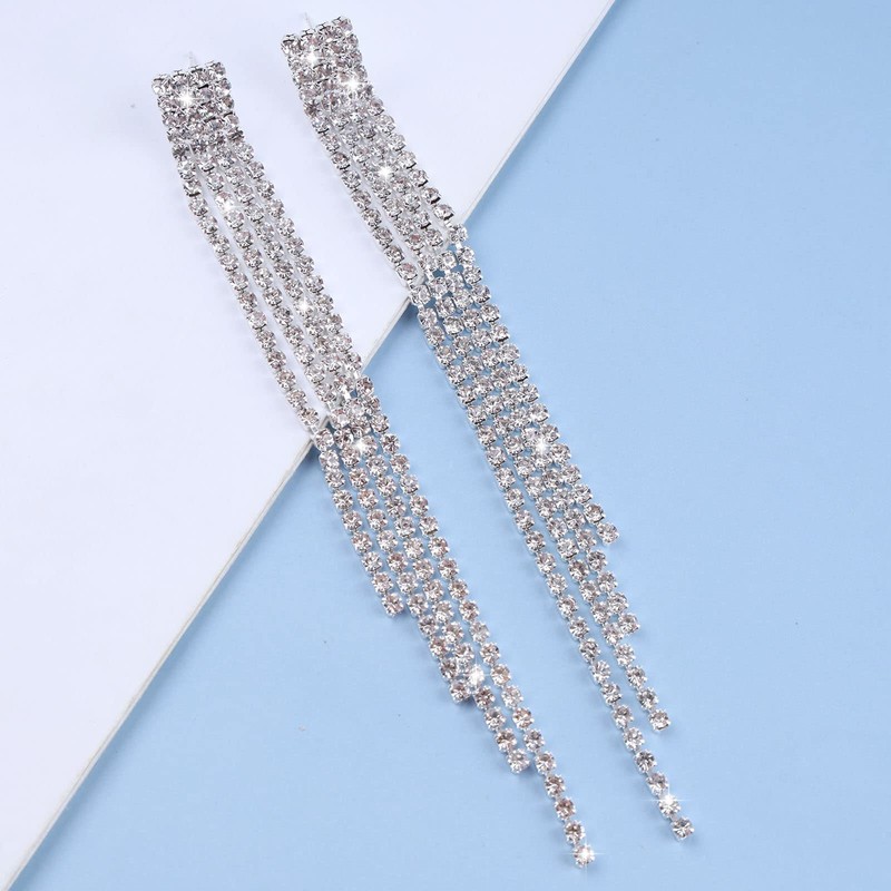 - Crystal Long Tassel Earrings.Item Details:Handmade Item.Size:As Picture.Color:Silver.Materials:Quality Alloy/Crystal.Place:Earlobe.Style:Boho/Minimalist.
