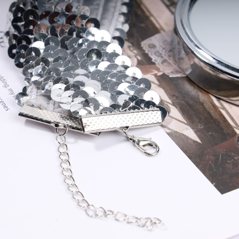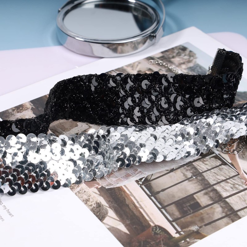 - *TseenYi punk fish scale sequin choker necklace.Necklace material: velvet, sequins, comfortable to wear. Colour: silver. Size: as shown in the picture, it fits most women.