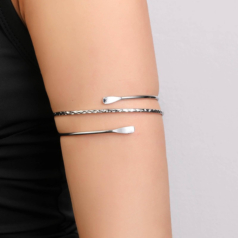 - Upper silver bracelet. Item design: a unique and stunning piece of jewellery. Unique shape, diverse collocation. Used to care for your arm for a more layered look, it is wonderful everyday jewellery, this bangle is very trendy in a minimalist style.