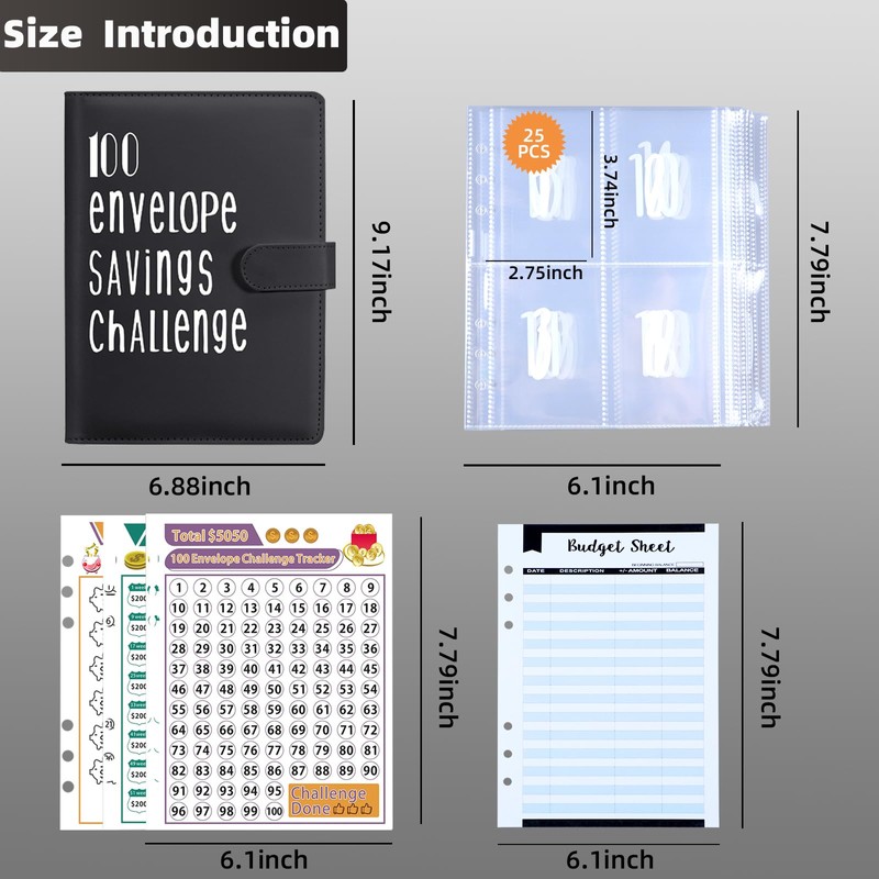 • 【100 Day Envelope Challenge Binder】An A5 binder shell with card slot and stainless steel ring, 25 reusable transparent cash envelopes (number 1 to 100), 12 A5 budget sheets when you finish challenge you can use these, 3pcs challenge tracker sheets of $5,050, $10,000, $500 , daily savings with purpose. A wealth of available accessories, good budget planner!