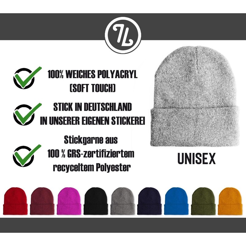 - Jede unserer Beanies wird individuell bestickt. Für die Bestickung nutzen wir hochwertiges Stickgarn aus 100% GRS-zertifiziertem recyceltem Polyester aus Post-Consumer-Abfall – für Stil, Qualität und Nachhaltigkeit.