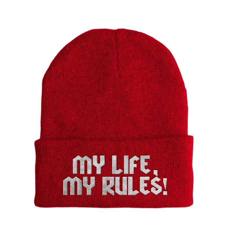 tshirtladen Mütze - My life, my rules - Beanie One Size - Wintermütze Soft Touch - Spruchmütze bestickt - Farbauswahl - lustige Mütze, Farbe: Rot