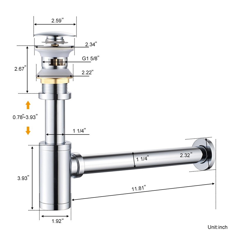 - 【Meet Plumbing Code】1-1/4 inch diameter slip-fit inlet, fit US plumbing standard and drain assembly. This bottle trap includes extension tube, 4.3 - 7.8 inches adjustable height, and adjustable outlet