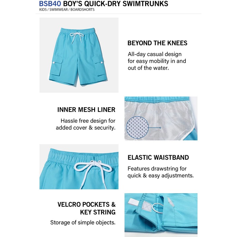 TSLA Boys Swim Trunks, Quick Dry UPF 50+ Beach Board Swim Shorts, Swimsuit Swimwear with Inner Mesh Liner, Solid Trunks Light Aqua, 4