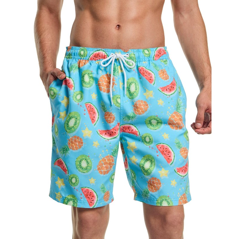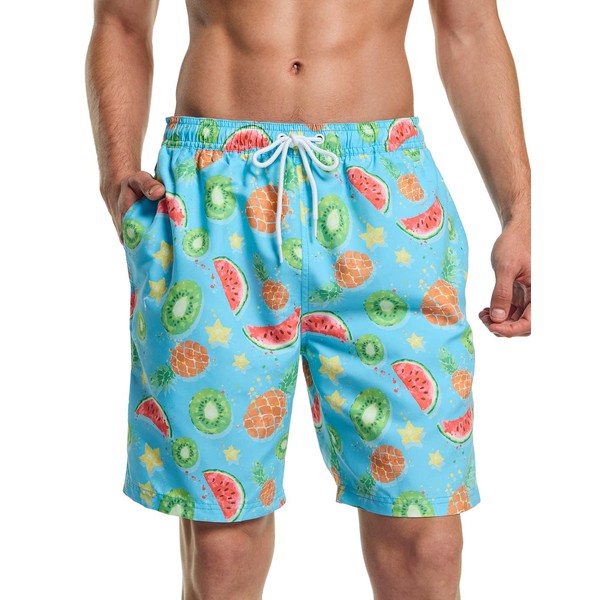 TSLA Men's Swim Trunks, Quick Dry Beach Swimming Board Shorts, Bathing Suits with Inner Mesh Lining and Pockets, Print 7'' Board Shorts Fruit Punch, Small