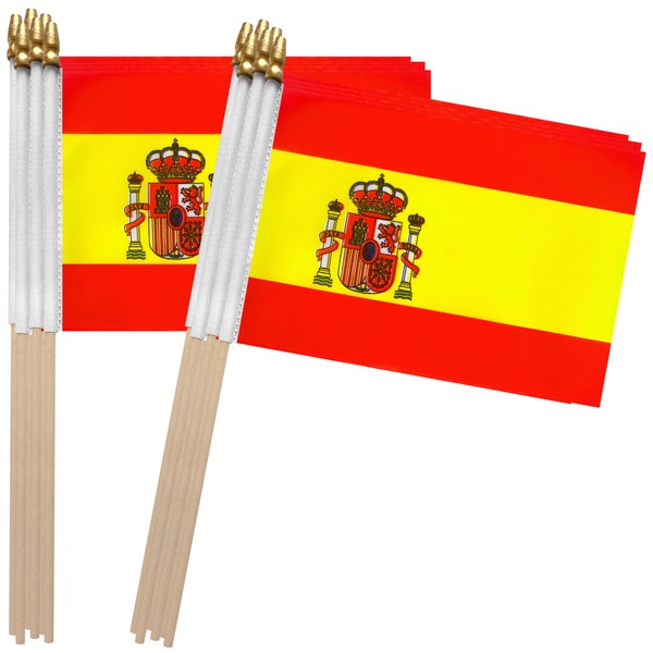 TSMD Spain Stick Flag Spanish Small Mini Hand Held Flags,5x8 Inch,12 Pack