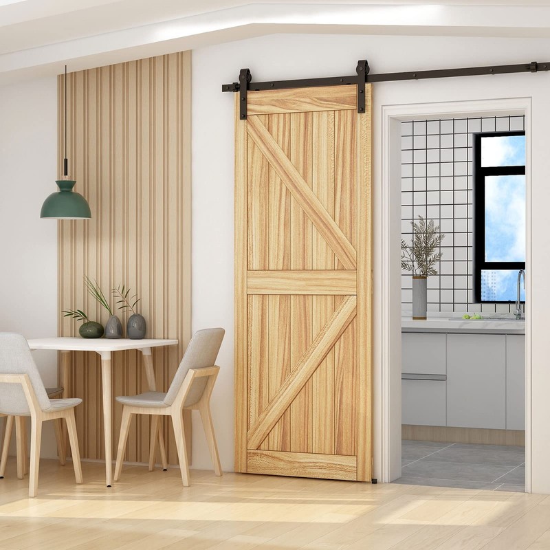 TSMST 6FT Sliding Barn Door Hardware Track Kit with Floor Guide and Spring Damping Door Stopper, Smoothly and Quietly, Widest to 36" Wide Door (1.18" to 1.97" Thickness)