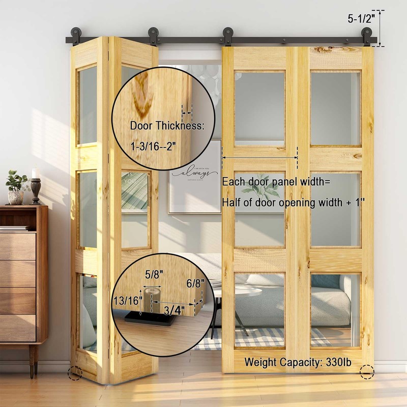 TSMST 9ft/108 Bifold Sliding Barn Door Hardware Kit for 4 Doors, Heavy Duty, Quiet Operation, Rustic Style, Steel, 1.58 inches Thick, Kit Includes Hardware, No Doors