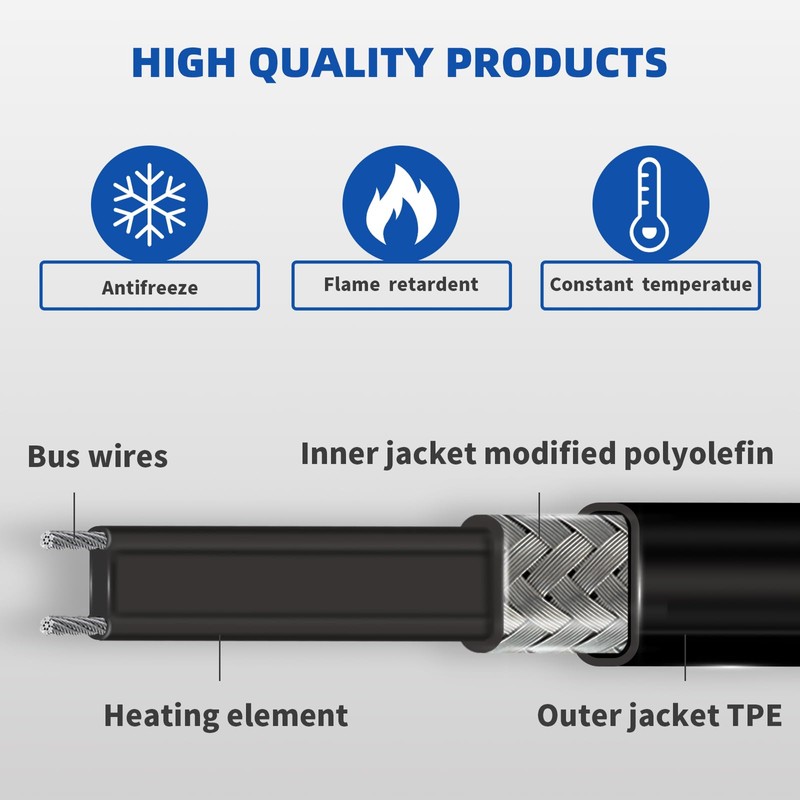 - EXCELLENT AFTER-SALES SERVICE: Each of our self-regulating heating cables has been tested for safety in the workshop. If you encounter any problems, you can contact us at any time, we will propose a satisfactory solution within 24 hours. Hope our products can bring you a warm feeling in the cold winter.