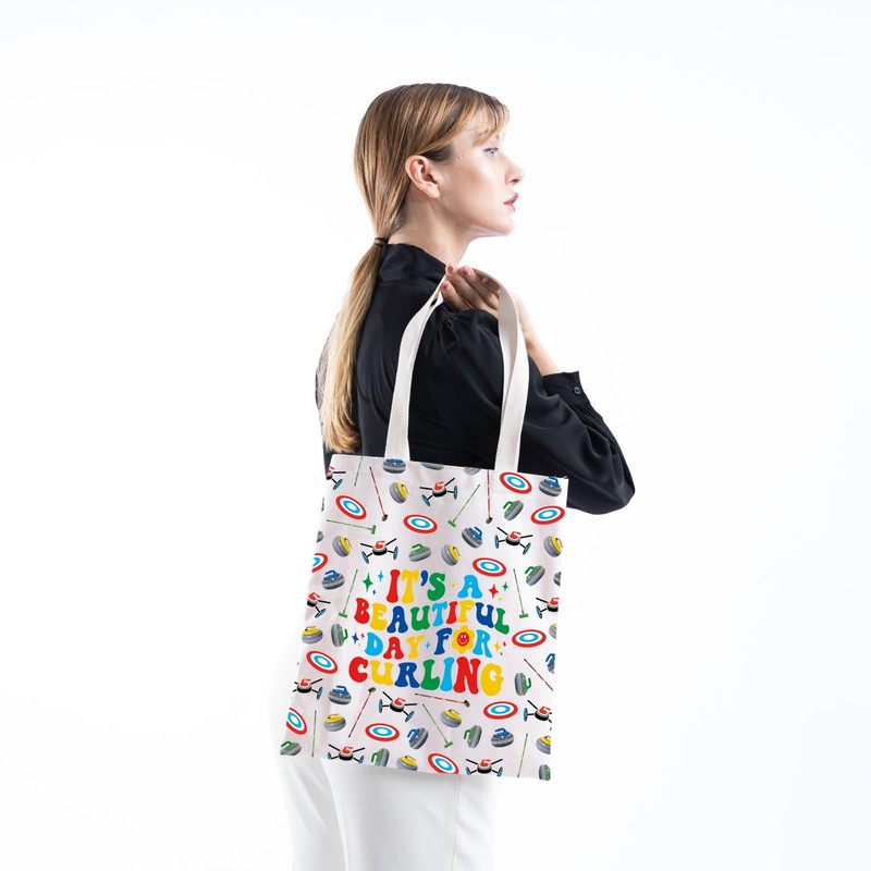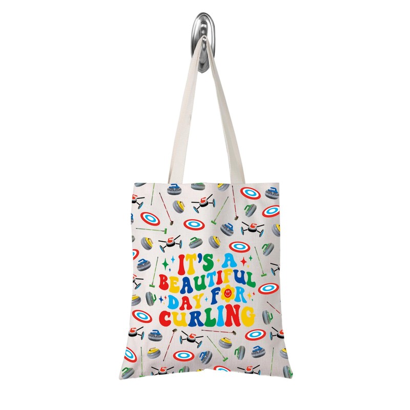 TSOTMO Cute Curling Gift It's a Beautiful Day for Curling Tote Bag Gift for Curling Fans Sport Lover Gift (for Curling Tote CA)