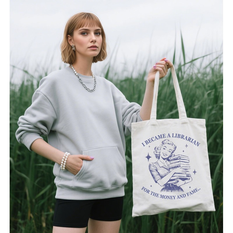 TSOTMO Funny Librarian Gift Book Lover Gift Funny Quote I Became A Librarian For The Money And Fame Tote Bag (Fame tote)