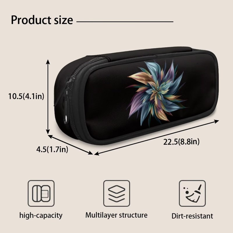 TSOVTHRID Abstract Flower Pencil Case for Women Men, Pen Box Pencil Cases for School Office Bible Journaling Supplies and Accessories, Black