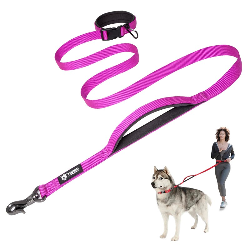 TSPRO Hands Free Dog Leash Adjustable Walking Running Dog Leash with Control Safety Padded Handle and Hook-shaped Buckle for Medium Large Dogs (Purple)