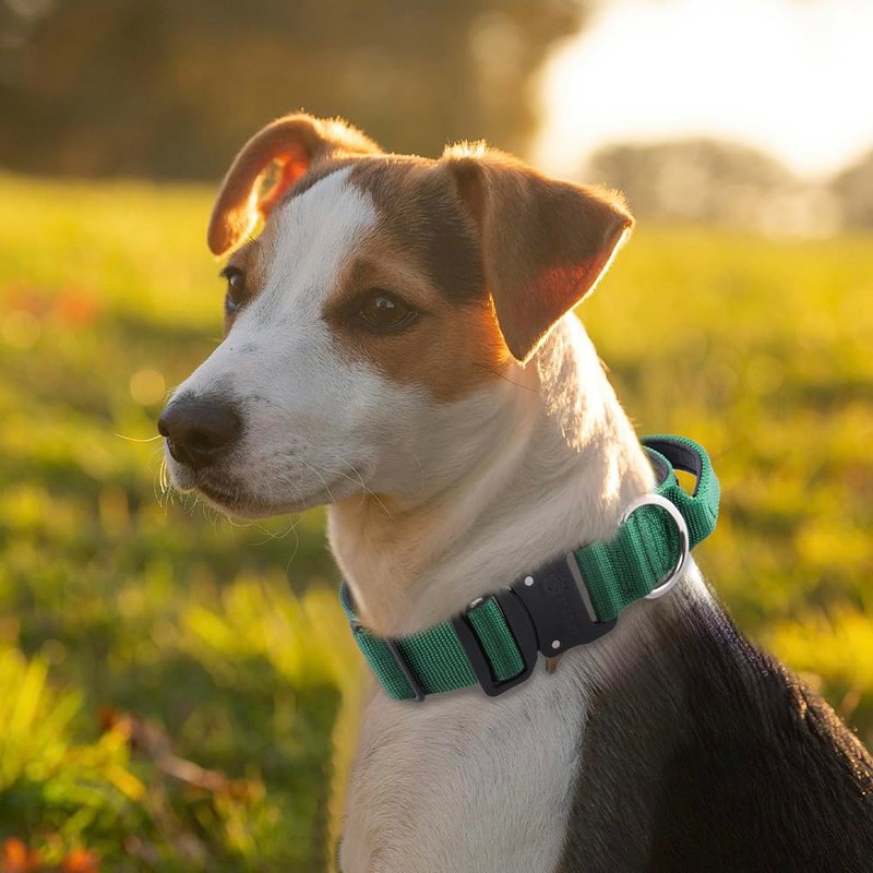 Fully adjustable belt size that can be adjusted by a quick release metal buckle depending on the size of your dog's neck.