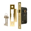 TSS 3 Lever Mortice Sash Lock for Internal Doors 2.5" (65mm) in Polished Brass. Internal Door Lock with 2 Keys. Door Lock with Key for Internal and External Doors.