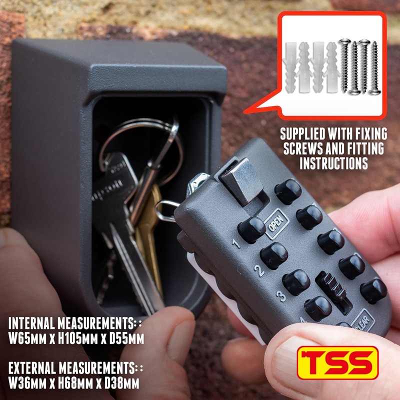TSS Push Button Wall Mounted Key Safe - Outdoor Key Lock Box - 3 to 10 Digit Code Length - Easy Code Change - Keysafe - Key Holders for the home - Key Lock Box