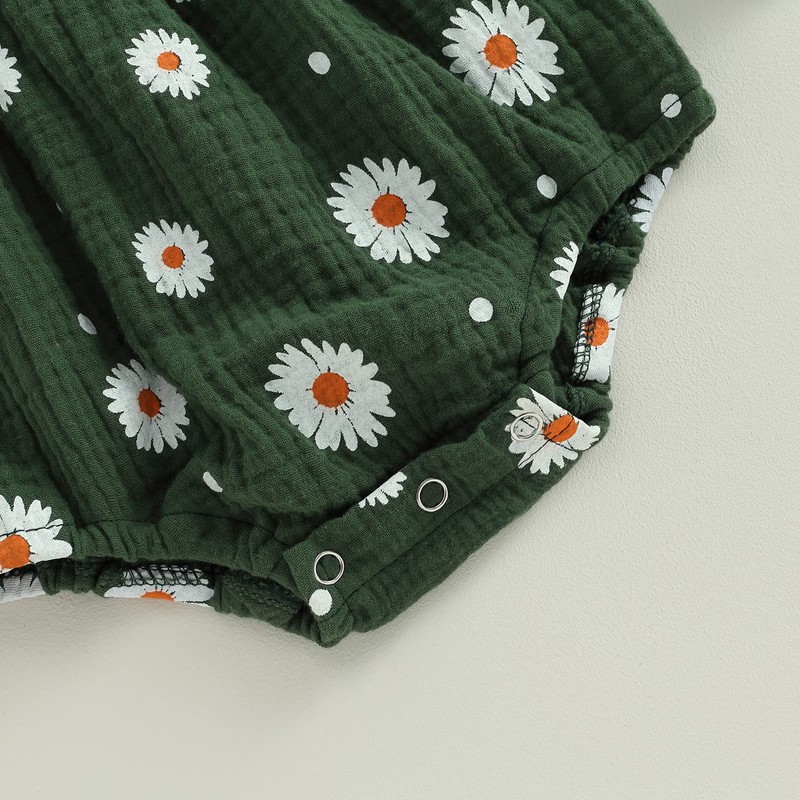 Tsseiatte Newborn Baby Girl Summer Bodysuit Daisy Print One Piece Ruffle Strap Romper Jumpsuit Cotton Playsuit with Headband (B-Green-daisy,0-3 Months)