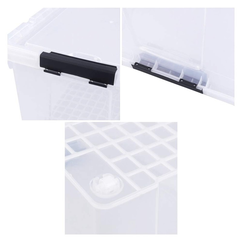 - Transparent boxes have visibility, with large capacity can hold most types of daily necessities, such as toiletry supplies, shoes, down jacket, quilts, toys, office documents, fruits, vegetables, etc