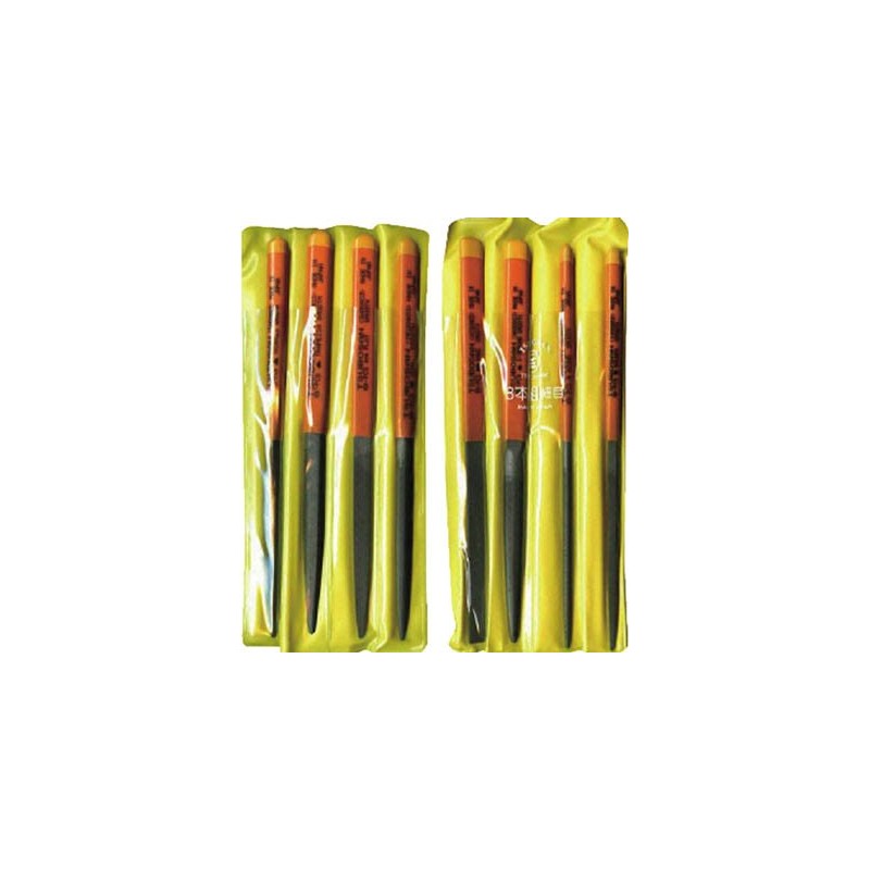 - Type: 8 piece set, fine point; Total length: 7.9 inches (200 mm); Blade length: 3.9 inches (100 mm); Grit size: 03 (fine) 30 cut eyes per 0.04 inch (1 cm). Total length x blade length: 7.9 x 3.9 inches (200 x 100 mm); Weight: 10.6 oz (300 g)