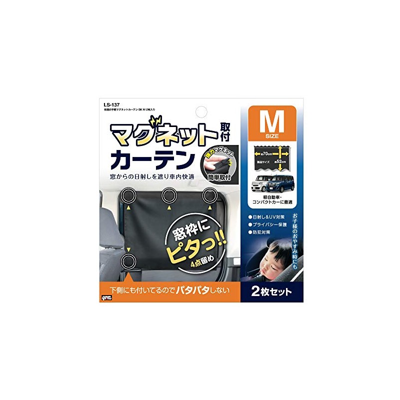 Tsuchiya Yac LS-137 Car Accessories Comfortable Easy Magnetic Curtain Black M Size L 7.8 x W 7.4 inches (19.9 x 18.9 cm) Pack of 2