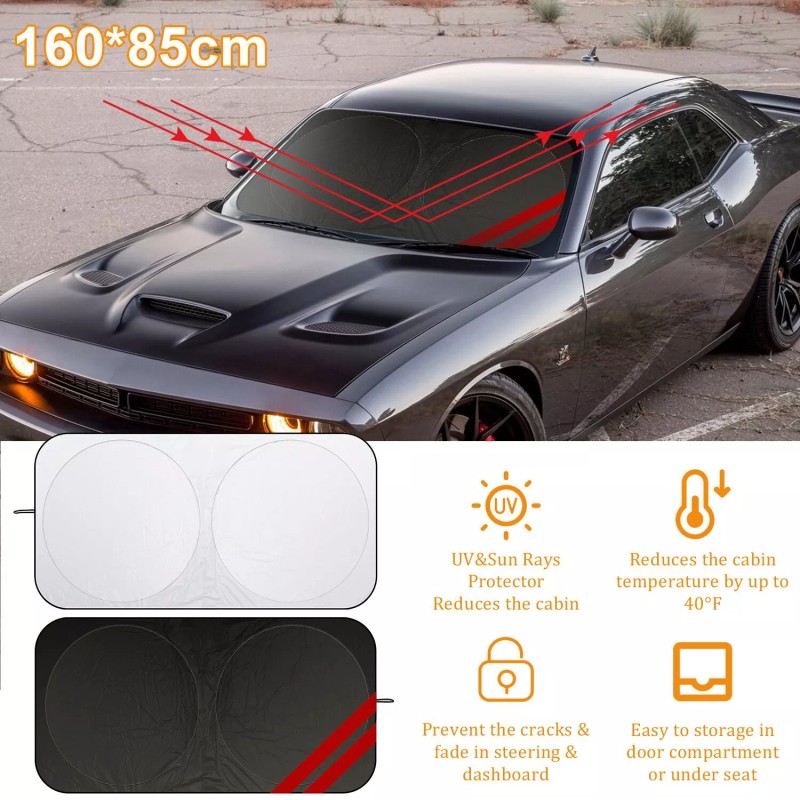 TSUINZ Car Windshield Sun Shade Foldable Shield Cover Visor 63*34'' Fits Dodge Charger