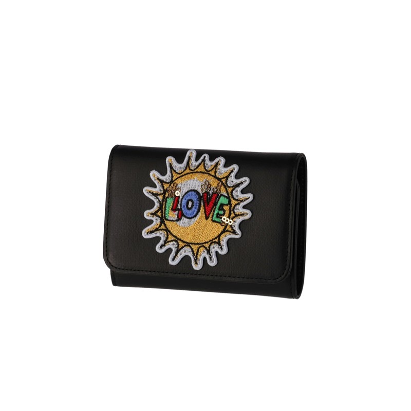 Tsumori Chisato Trifold Wallet, Deep Bill Holder, Love Patch, Black