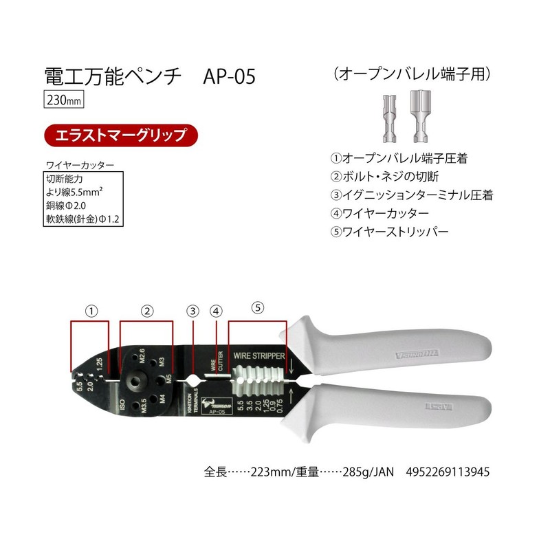 ツノダ(TSUNODA) 電工万能ペンチ オープンバレル(ギボシ)端子用 AP-05