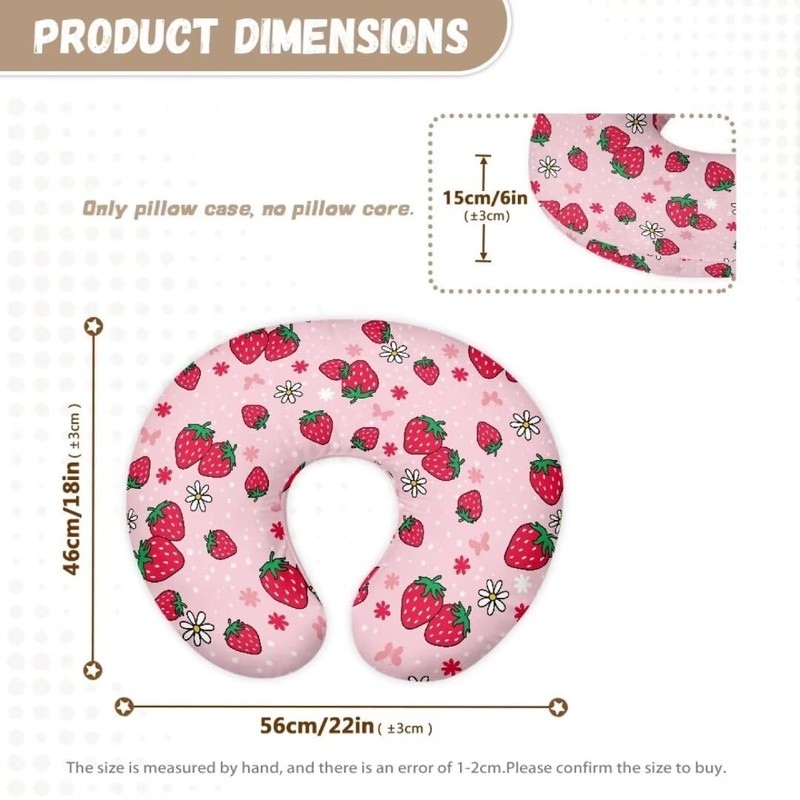 TSVAGA Nursing Pillow Cover Girls Strawberry Breastfeeding Pillow Cover for Baby Snug Fits Newborn Nursing Pillow Case, Super Soft Breathable