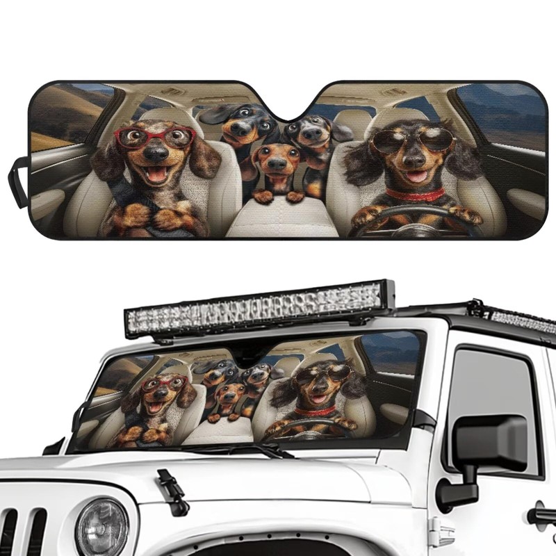 TSVAGA Windshield Sun Shade Funny Dachshund Vehicle Accessories Compatible with Jeep Gladiator JT 2020-2025 Blocks Heat and UV Rays