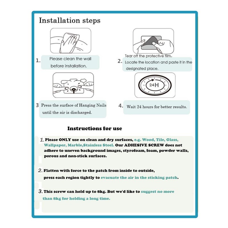 TSXGJ [12PcsSet] PVC Adhesive Nails Wall Hooks Heavy Duty Stick on Door Nail Free Screw Non-Trace No Drilling Nail Self Waterproof Adhesive Hanging Nails Hooks Holders Screws for Home Kitchen (6mm)