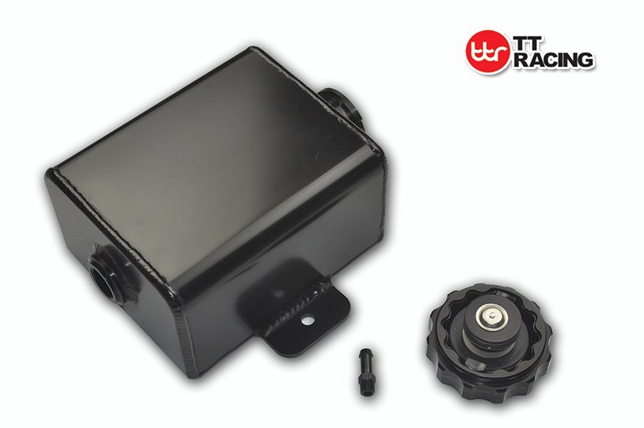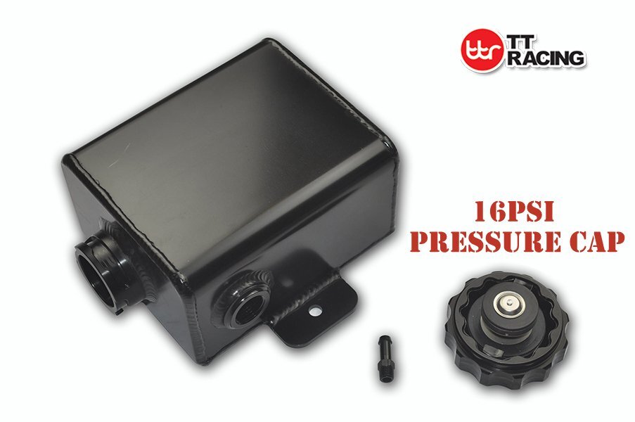 TT RACING Universal -8ORB 1.2L Black Alloy Radiator Overflow Coolant Expansion Tank AN8