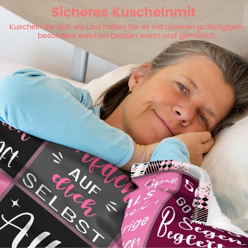 - 💗Birthday Gift Blanket: Birthday blessings are printed on the gift blanket for women. The words are beautiful and moving, and the romantic words and patterns convey the warmest blessing. The text on this great blanket features many inspirational words such as "Happy 50th Birthday," "Kein tag zu alt für fabelhaftigkeit" and other funny texts.