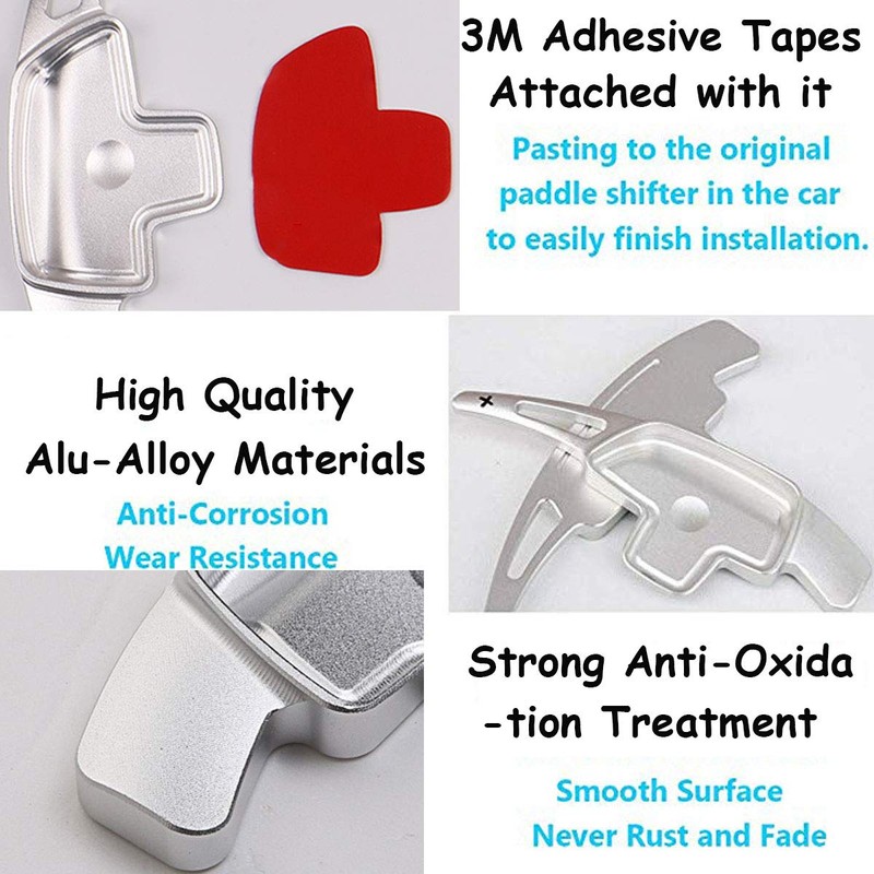 - Good Installation: Non-destructive installation and easy to install. First, cleaning the both paddles, secondly tearing off the 3M adhesion tapes, thirdly apply the adhesive promoter to the tapes, so as to enhance the stickiness between adhesive tape and paddle, fourthly firmly stick them to the paddles. Finally install paddle extensions onto the original paddles. Please refer to the Picture 5 and you may contact us if they does not stick well on steering wheel.