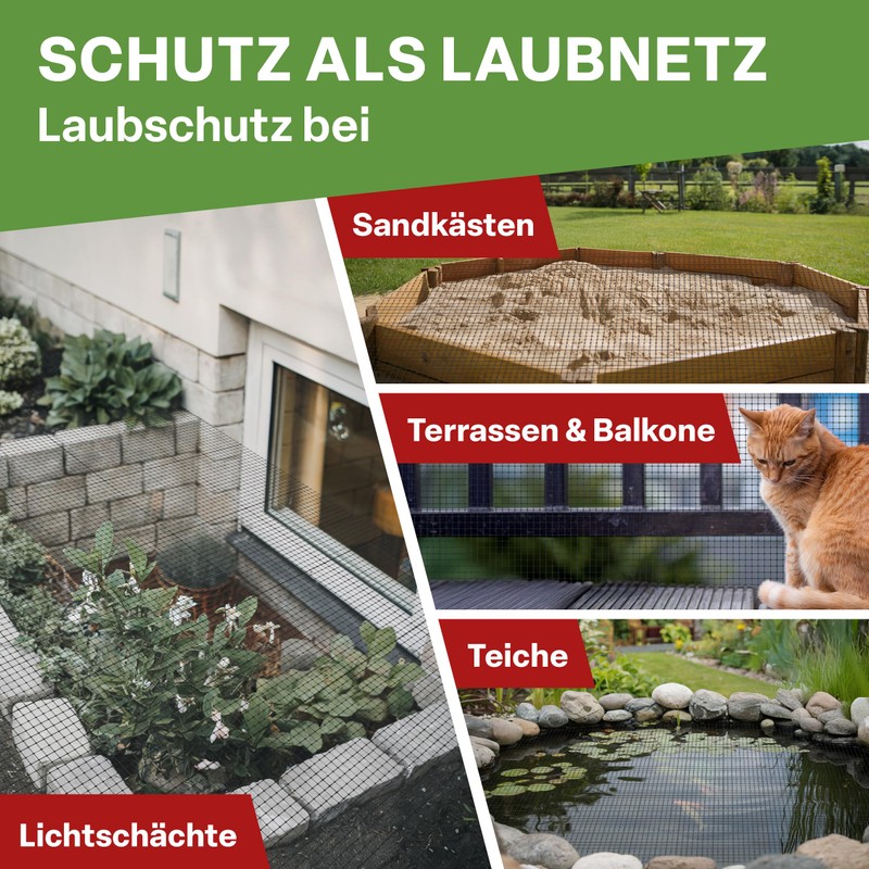 Whether in the allotment, on the balcony or as a leaf protection on the garden pond - the net adapts flexibly to your needs. It is also ideal as a protection for sandpits, outdoor enclosures or as a cover for aviaries.