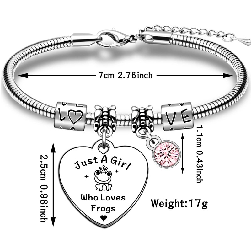 - 💕【Frog Bracelet Product Size】:Diameter of bracelet 7 cm/2.76 inch+5cm/1.97inch adjustable chain ,Heart pendant 2.5 cm/0.98 inch,Pink Crystal 1.1cm/0.43inch,it can allow you to enlarge more or less based on the circumference of the wrist.Perfect gift for the Graduation,Birthday,Christmas Day...