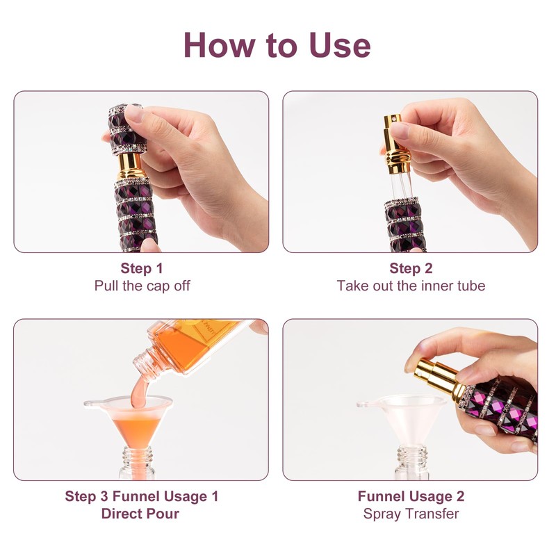 - Universal Funnel Easy Refill: Our perfume refill bottle includes a funnel, it compatible with all perfume refill needs.