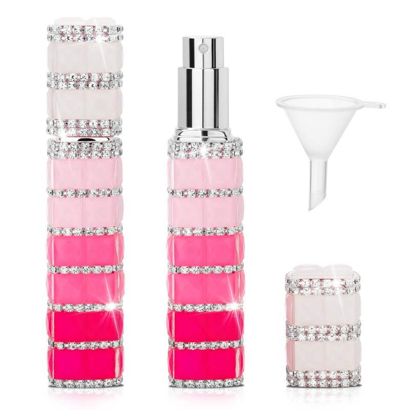 TTOYOUU Travel Perfume Atomizer Refillable Bottle, 12ml Rhinestone Mini Perfume Bottles Empty Refillable Travel Atomizer Sprayer with Funnel (Pink White)