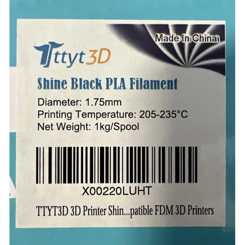 TTYT3D Silk Black PLA 3D Printer Filament - 1.75mm 3D Printing
