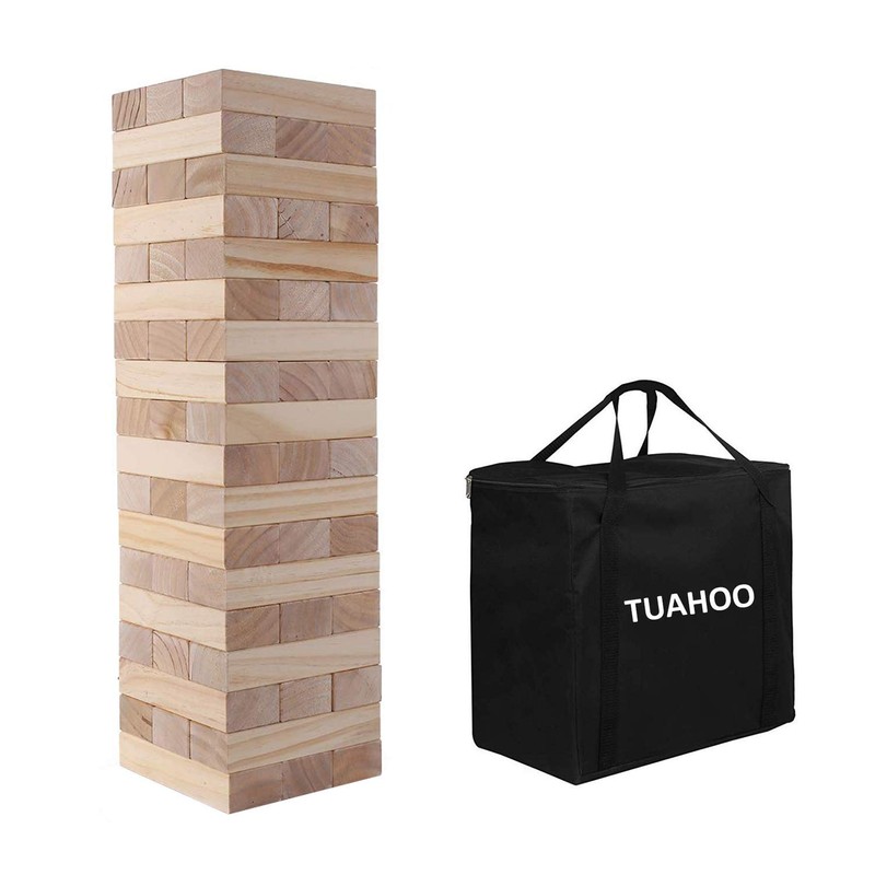 TUAHOO Outdoor Games Giant Tumble Tower (Stacks to 4+ Feet), Jumbo Tumbling Timber, Pine Wood Stacking Backyard Game for Kids Adult Family Fun, 54-Blocks Tower