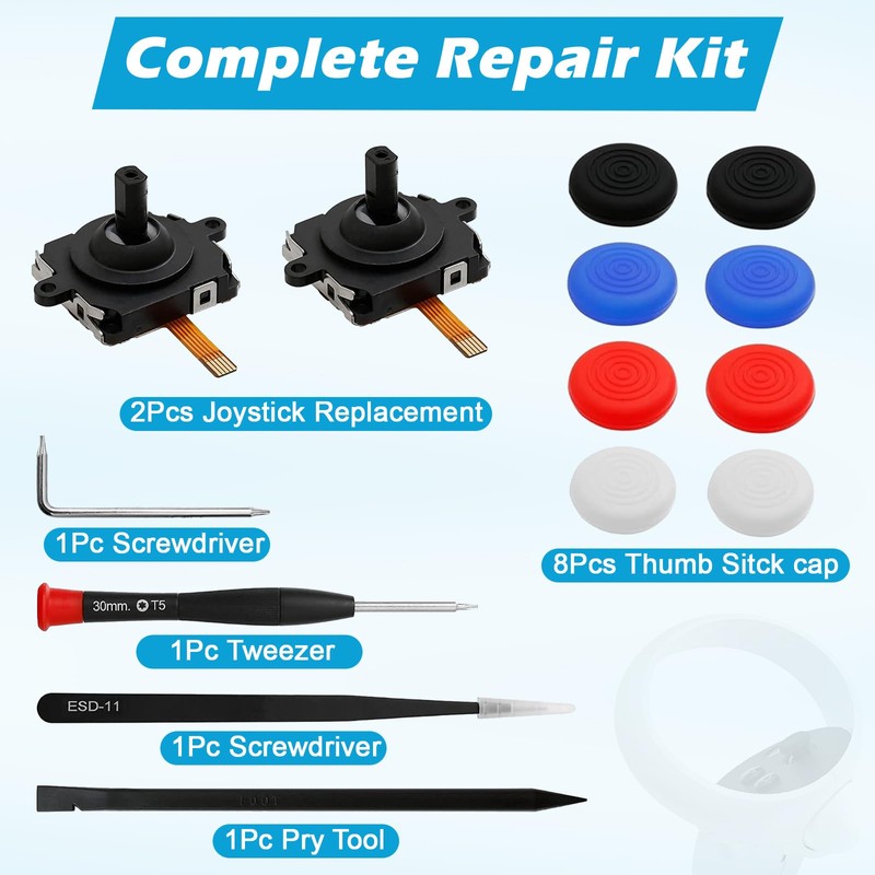 - 【THE PERFECT REPAIR KIT】-This comprehensive repair kit is compatible with both left and right joysticks of the for qculus quest 2 controller. Save money and say goodbye to purchasing new VR controllers.