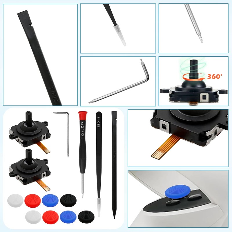 - 【EASY TO INSTALL】-Effortlessly install and repair damaged, worn-out, or unresponsive analog sticks with our full set of professional repair tools. Restore your controller's performance efficiently.