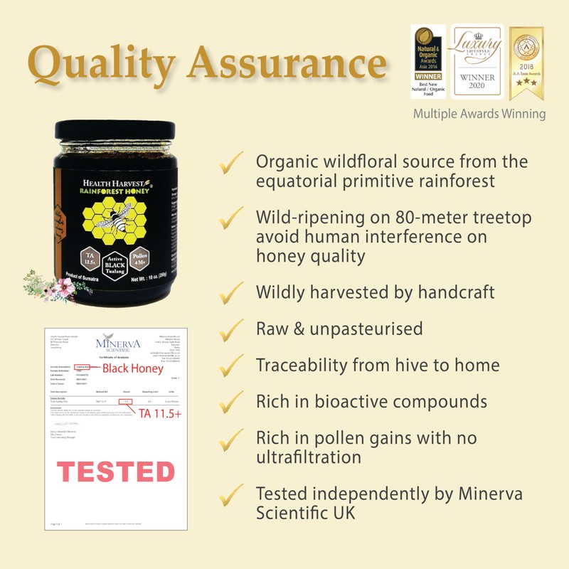 - In the global honey market, Health Harvest is one of the very few brands fully disclosing pollen grains of our Tualang Honey products to the consumers.