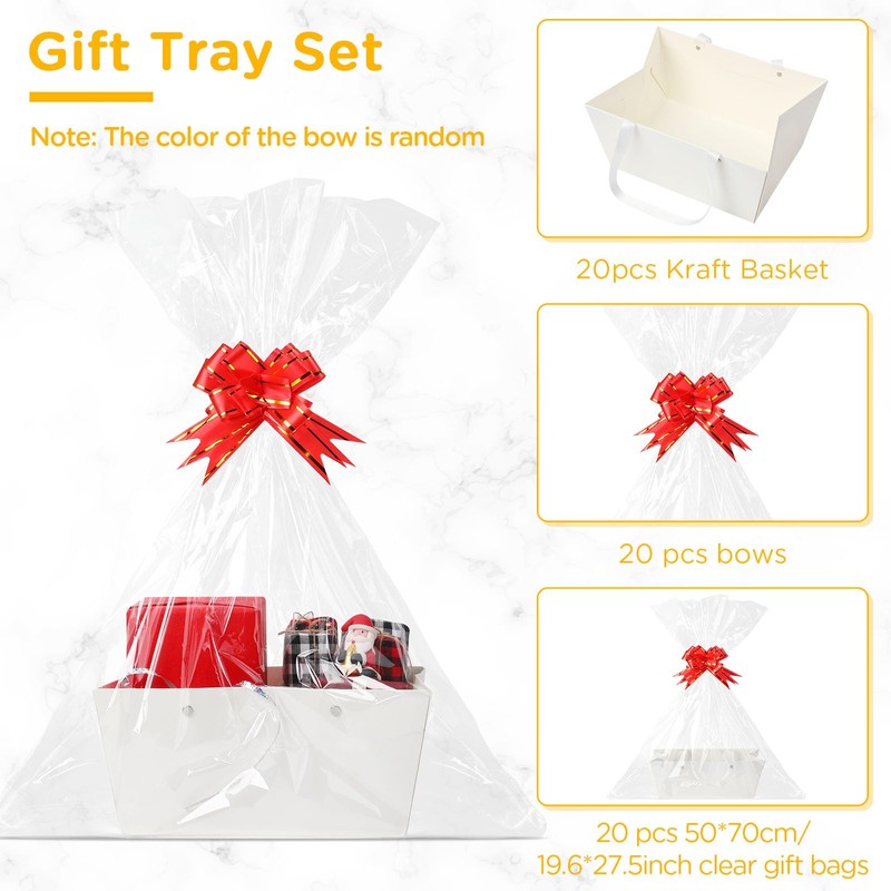 - Long Term Service: our gift basket tray is formed by quality kraft paper, solid and serviceable, not easy to break and fade, has nice load bearing capacity, the inside surface is water resistant, and the bags and bows are made of plastic, long lasting and safe, you can use with confidence
