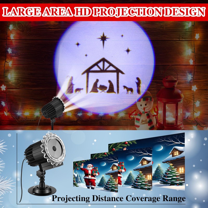 - Vibrant Display with the Nativity Christmas Projector: holiday projector light outdoor is designed to dramatically enhance your Christmas decoration; With its blue light, it projects high definition and vivid images of the Christmas scene adding a magical touch to your festivities; Its built-in fan accelerates heat dissipation, ensuring the projector works at its good capacity always