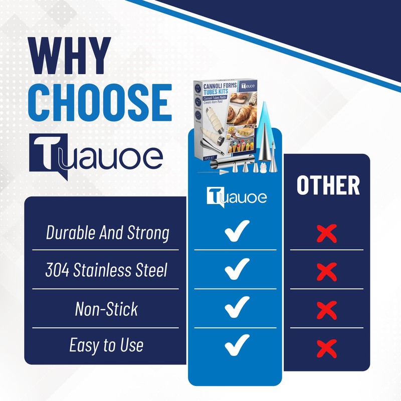 - Non-stick: The smooth surface prevents the paste from sticking. Almost seamless cannoli tubes molds do not catch the dough and make it easy to take off baked goods.