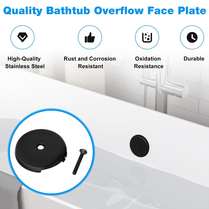 Bathtub overflow drain cover features a sleek matte black finish which adds a striking contemporary aesthetic to your bathroom.add this bathtub overflow plate to your bathtub for a sleek and efficient look.