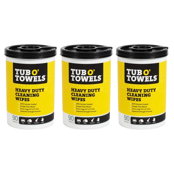 Tub O Towels TW90 Heavy-Duty 10" x 12" Size Multi-Surface Cleaning Wipes, 90 Count Per Canister 3 Pack
