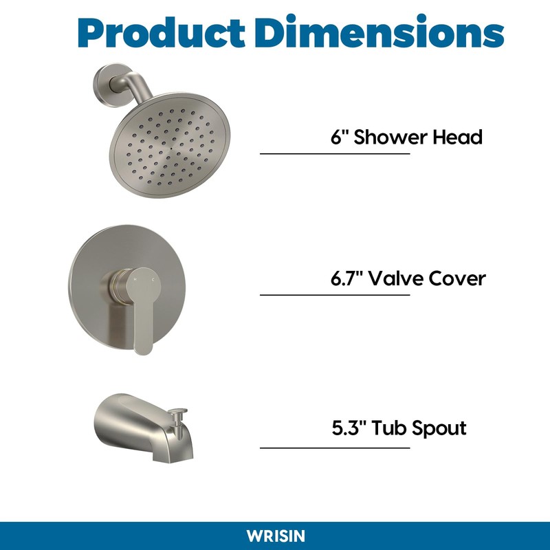 - 【High-Pressure Shower Head】WRISIN shower tub faucets sets complete with a 6-inch single-function rain shower head, The high-pressure shower head gives you an efficient shower experience. (Flow rate: 1.8 GPM, 6.8 L/min at 60 PSI)