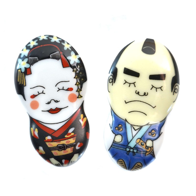 Tubbies Chopsticks Rest Kutani Ware Funny 2 Piece Edo Kukko Set Samurai Geisha Pair