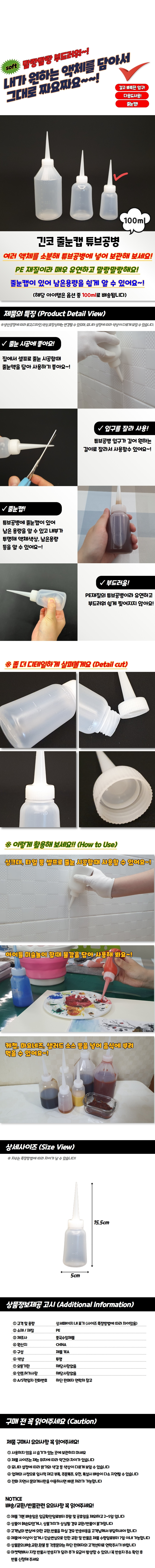 튜브형 디자인 긴코 줄눈캡 공병 100ml 용기 수납용